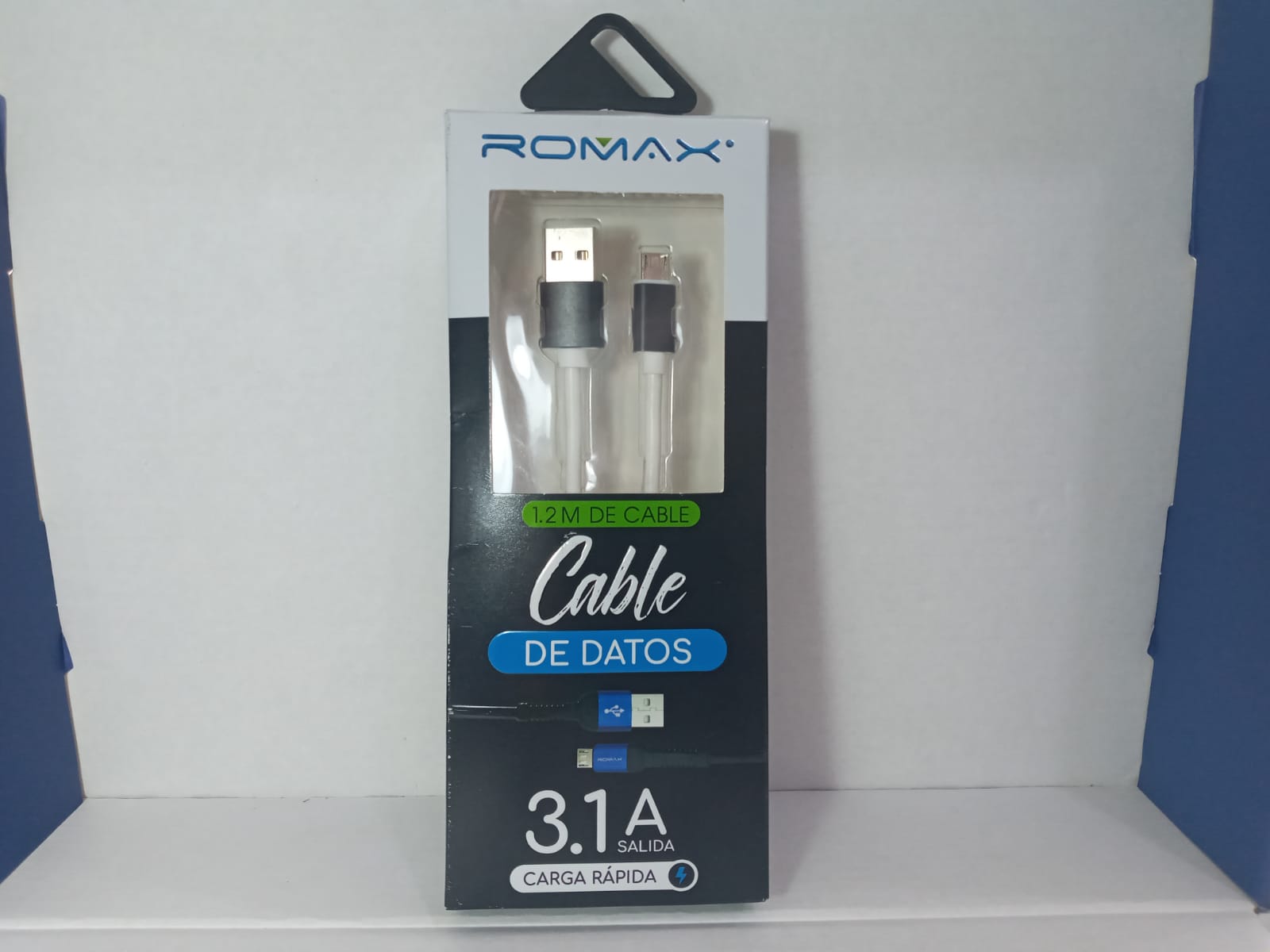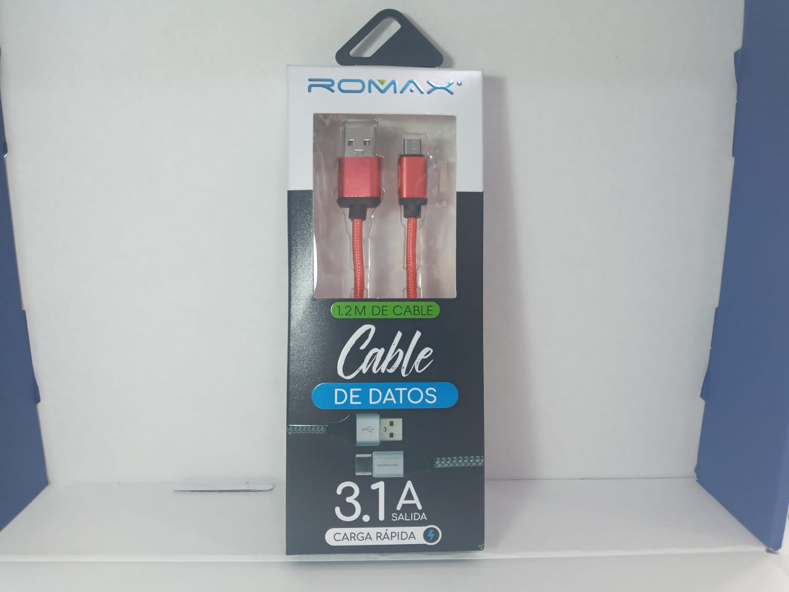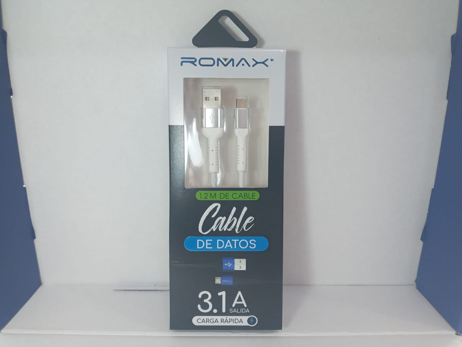 Cable USB ROMAX Características: .Extremos Recubiertos .Amperaje de 3.1 .Carga Rápida .Disponible para V8 y Tipo C